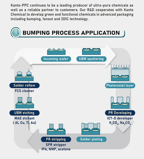 Kanto PPC had introduce bumping stripper that are formulated chemicals designed specifically for the removal of wet film and dry film during the bumping process.