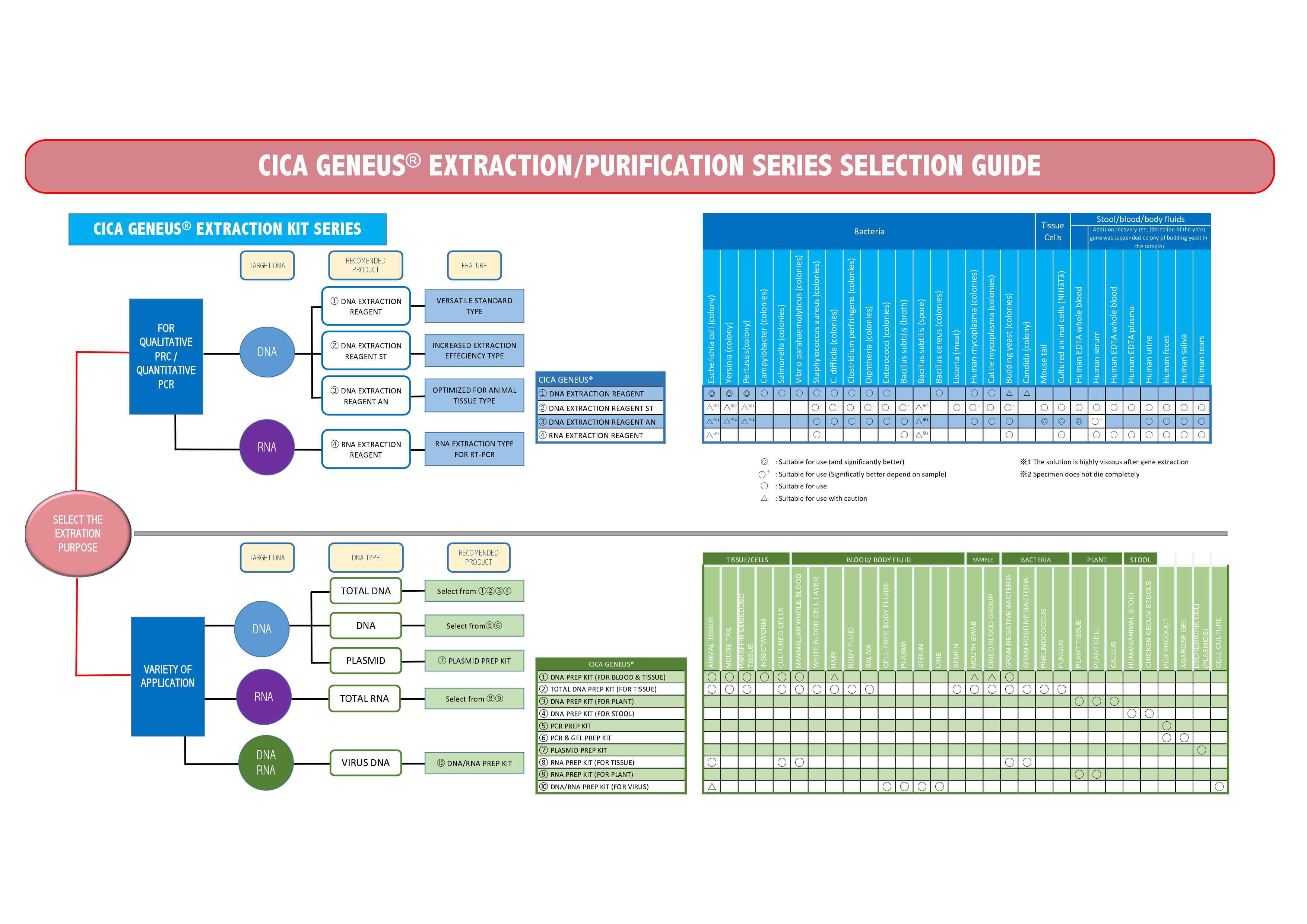 Product Information [supsystic-tables id=166] Selection Guide Product Detail [supsystic-tables id=167] CICA GENEUS DNA PURIFICATION KIT CICA GENEUS DNA EXTRACTION KITS ENYZME FOR DNA AMPLIFICATION
